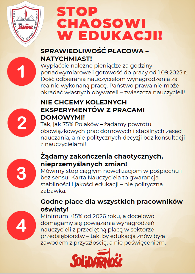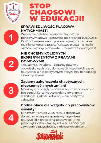 Po lewej stronie, powyżej tego tekstu, są szybkie przekierowania na strony: Krajowej Sekcji Oświaty i Wychowania NSZZ "Solidarność". Między innymi dlatego na naszej stronie nie powtarzamy już tego, co można przeczytać na tamtej stronie.